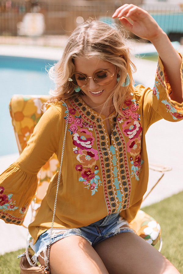 Road To Paradise Embroidered Top in Mustard