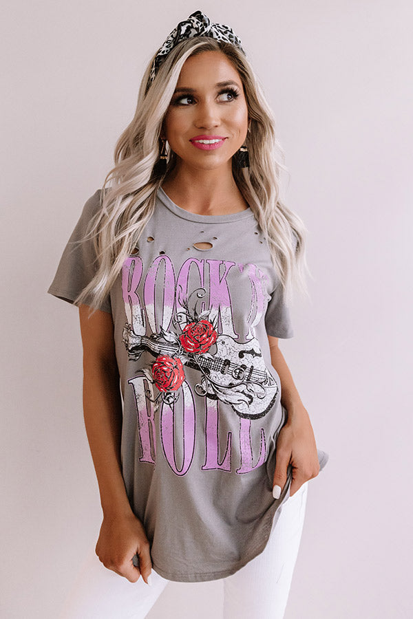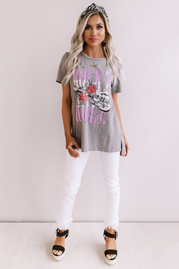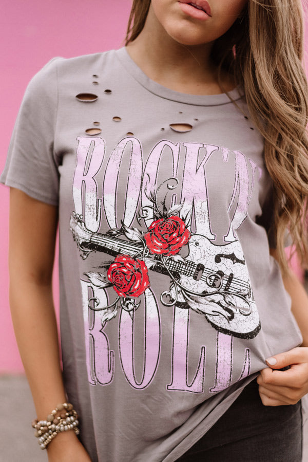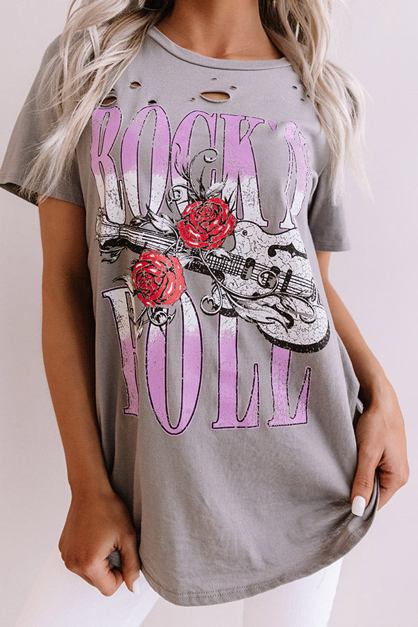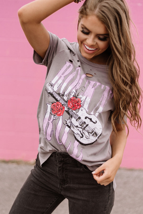Rock And Roll Distressed Boyfriend Tee In Grey