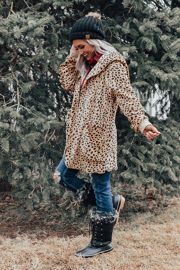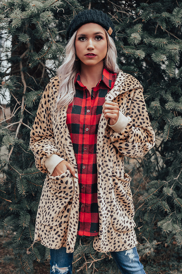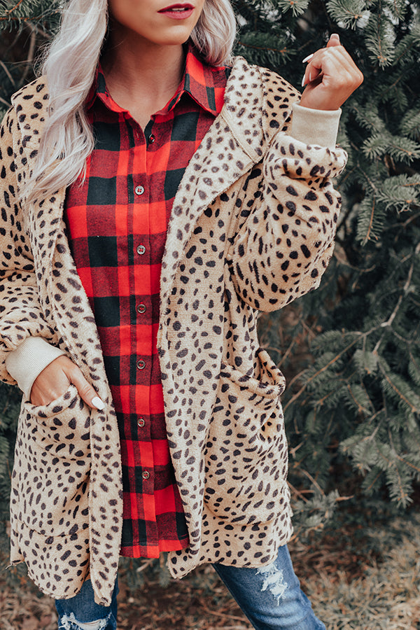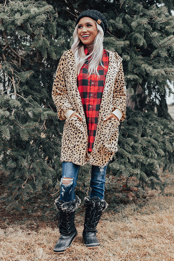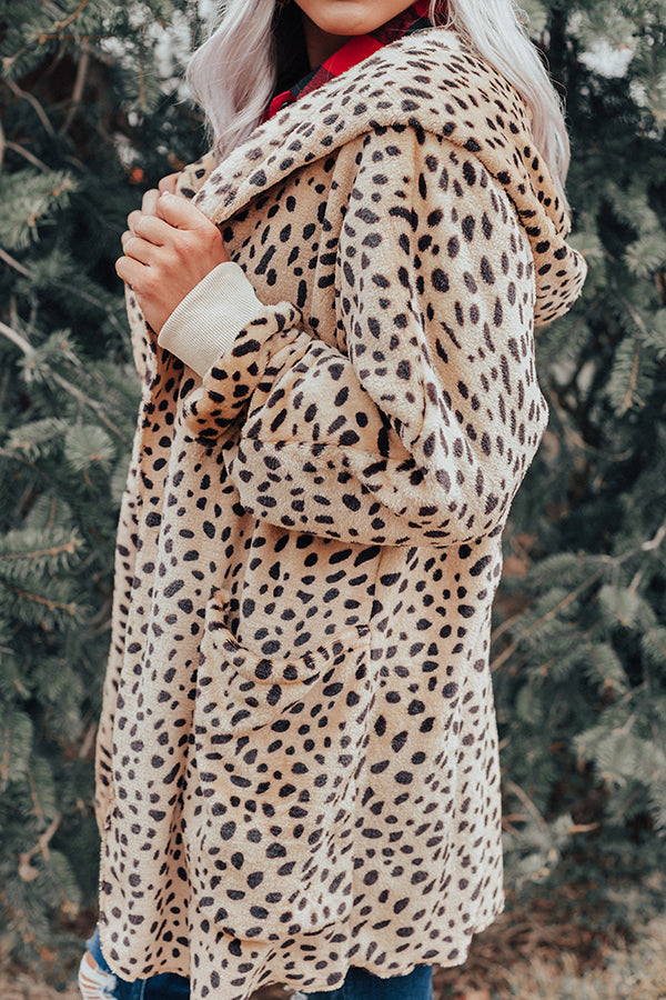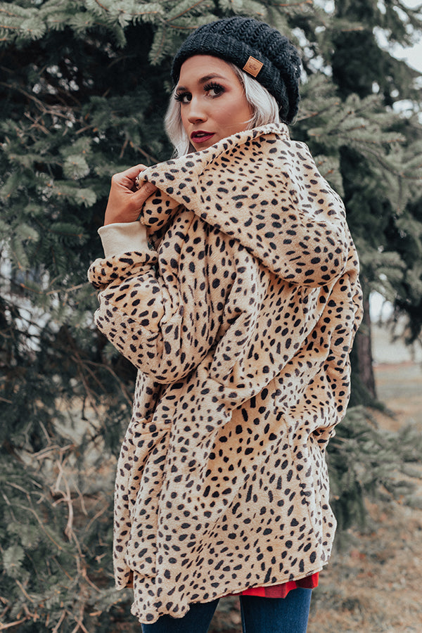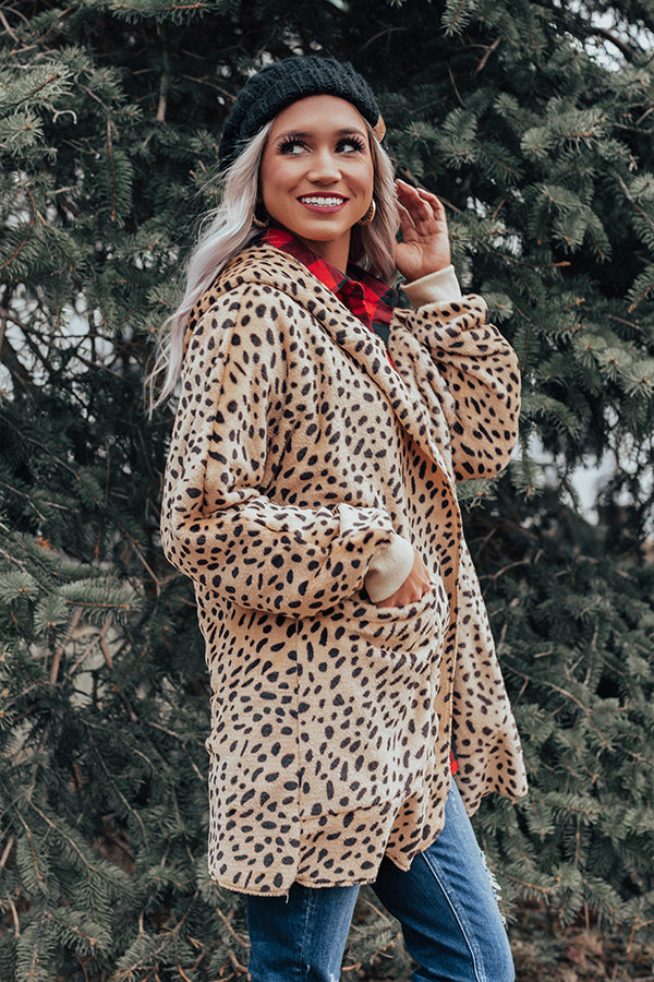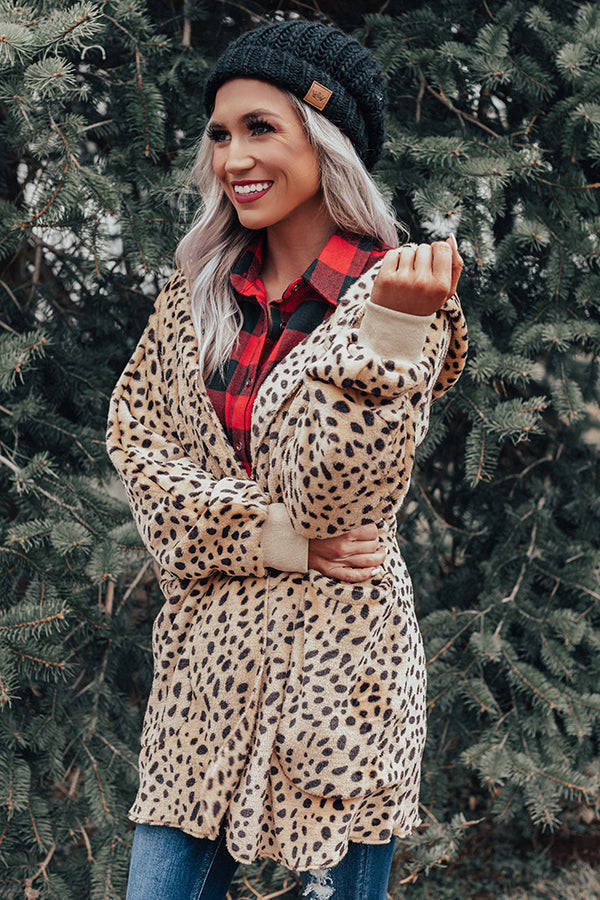 You will undoubtedly "rock the room" when you wear this adorable iced latte colored cardigan featuring ultra soft lightweight material patterned with a bold black spotted leopard print, long loose bishop sleeves with fitted cuffs, a hooded back, low hidden side pockets, and a relaxed open front silhouette that falls into a straight mid-thigh length hemline! You can layer this ultra warm and versatile piece with just about anything from a basic tank to a sweater, jeans to skirts or dresses, booties to wedges or sandals, clutches to totes, and hats to earrings! Measurements