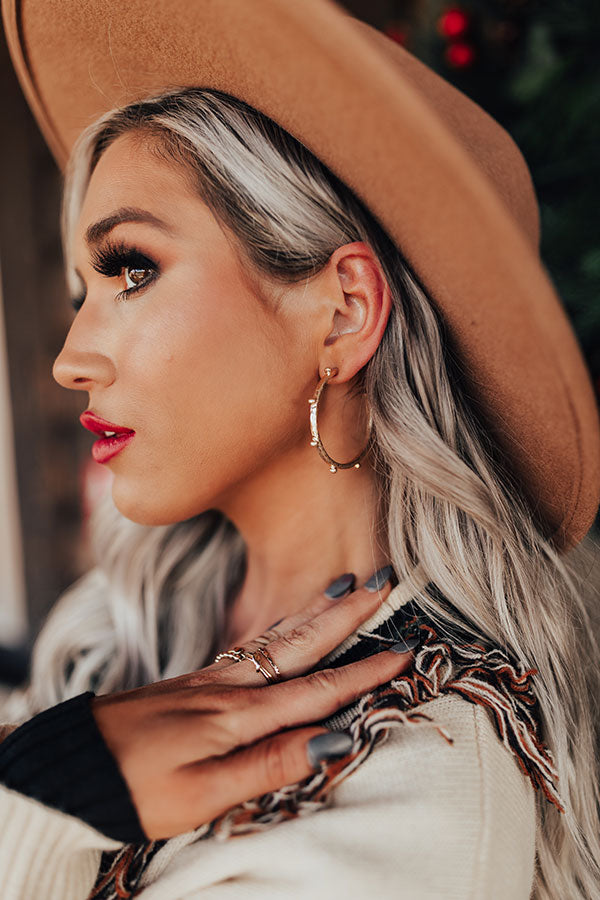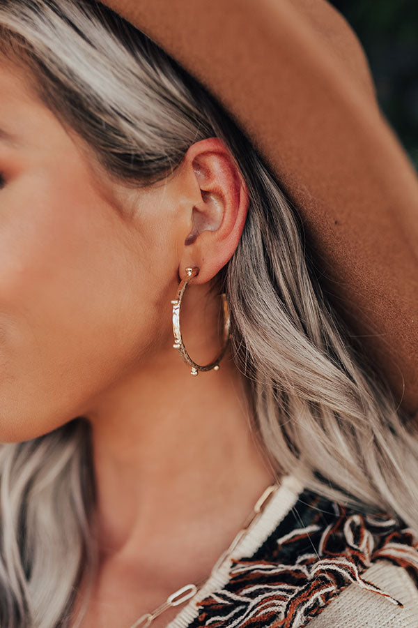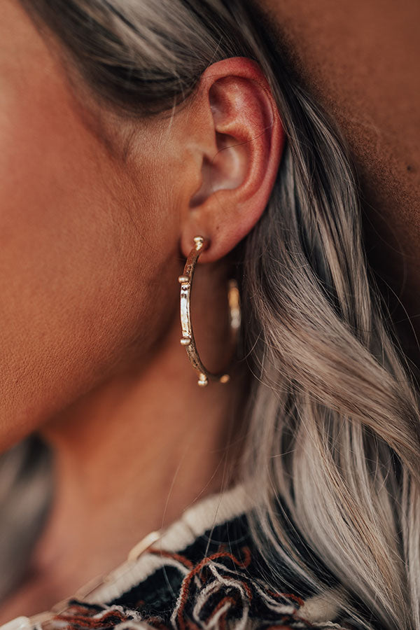 Liven up your look with these simple but significant earrings featuring large dangling gold hoop earrings with subtle stud accents!