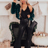 Take on the holidays in style with our elegant black 'Rockefeller Views' bodysuit featuring sleek lightweight satin material, a deep v-cut neckline, spaghetti straps with a racerback fit, and a flattering form fitting silhouette that ends in cheeky bottoms with a snap button closure! Measurements