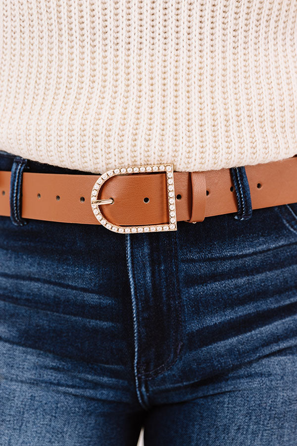 Complete your already amazing look with our chic 'Rodeo Drive Darling Belt' featuring a wide brown strap and a rounded gold buckle with pearl accents!