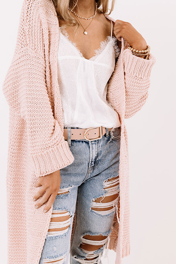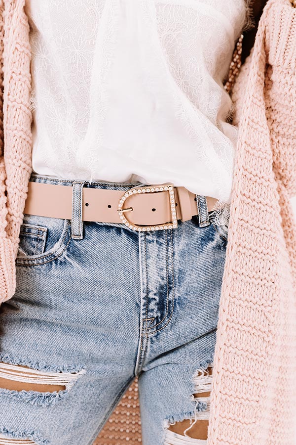 Complete your already amazing look with our chic 'Rodeo Drive Darling Belt' featuring a wide latte colored strap and a rounded gold buckle with pearl accents!