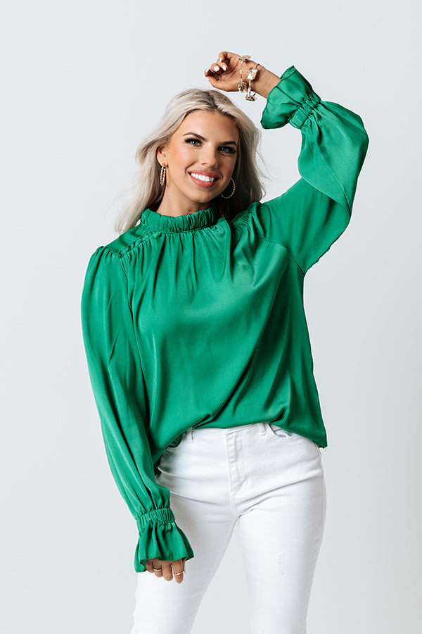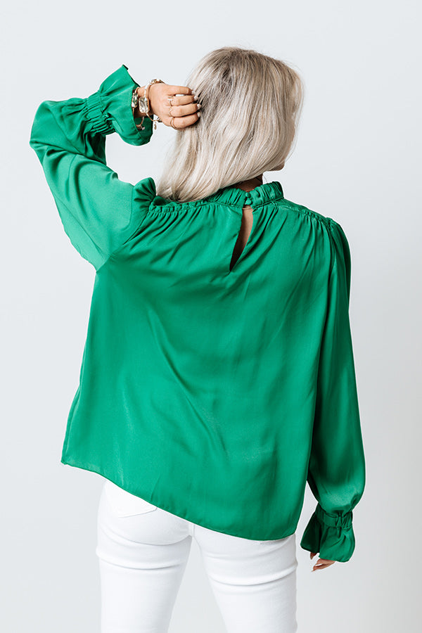 We have no doubt you will look darling in this chic emerald colored shift top featuring lightweight flowy material, a high rounded neckline, long loose sleeves with flared cuffs, a keyhole accented upper back with a button closure, and a slouched silhouette that cascades into an uneven hemline! Measurements
