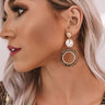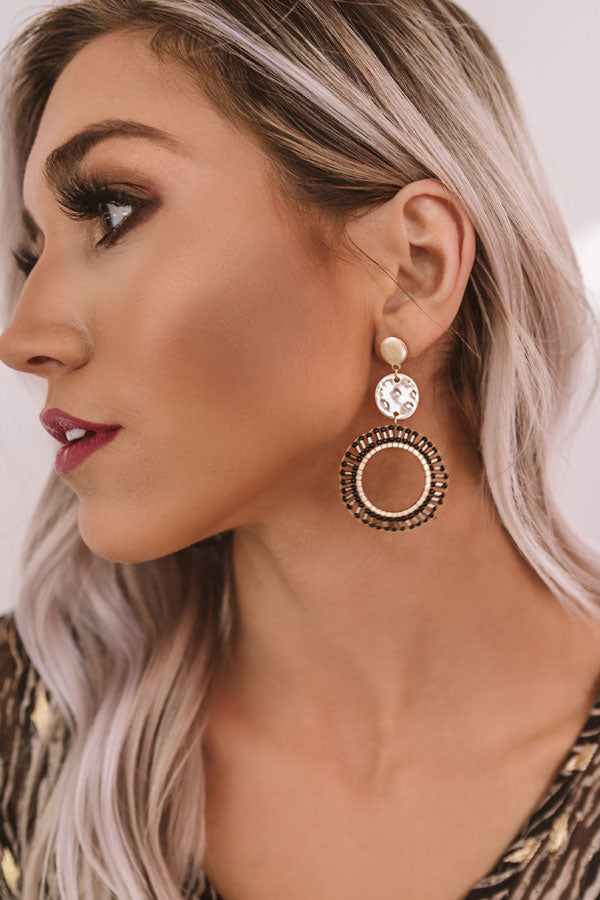 Slay all day in our "Romance On Repeat" statement earrings featuring two dangling textured gold circles with black open hoops!