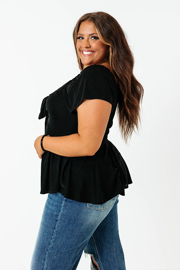 Romantic Getaway Front Tie Babydoll Top In Black Curves