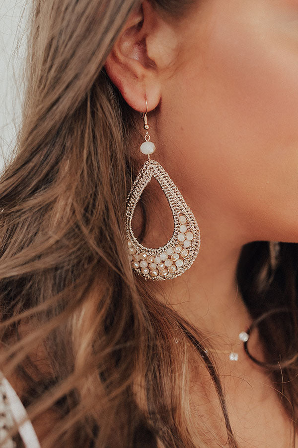 Leave a little glamour wherever you go with the "Romantic Reflections" statement earrings featuring woven iced latte beaded open teardrop pendants!