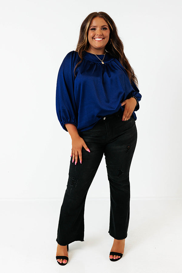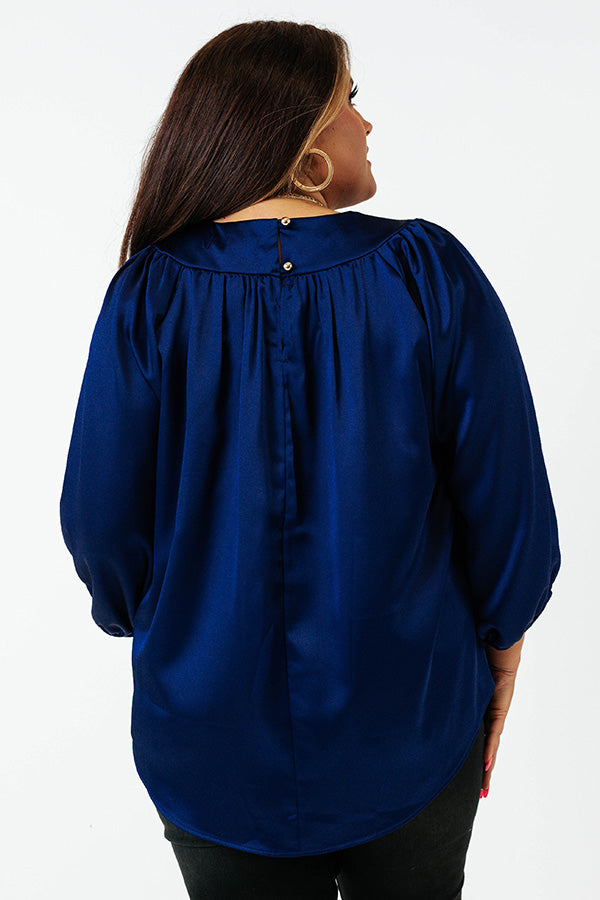 Romantic Tone Satin Shift Top In Royal Blue Curves