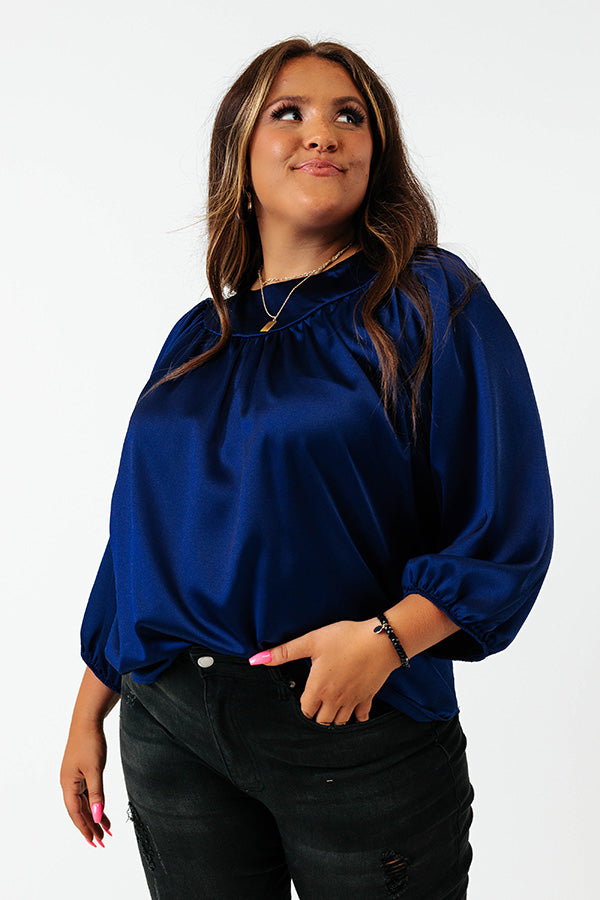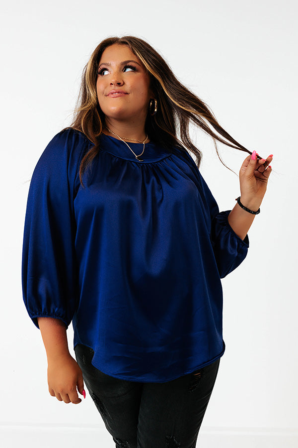 Get date night ready with our chic royal blue plus size 'Romantic Tone' shift top featuring lightweight satin material, a rounded neckline with a two button closure in the back, loose 3/4-length sleeves, and a relaxed silhouette that falls into a rounded hemline!