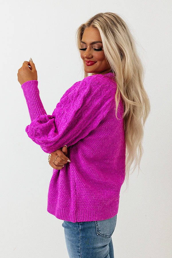 Make a bold fall statement with our charming violet hued 'Rooftop Bash' sweater featuring soft knit material, a rounded neckline, chunky bubble sleeves with fitted forearm cuffs, and a slouched silhouette that falls into a straight hemline!