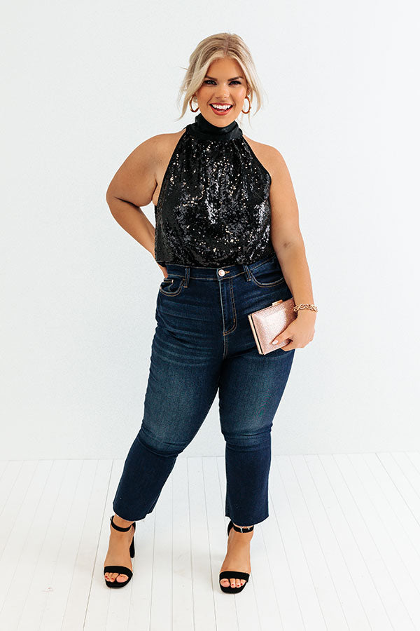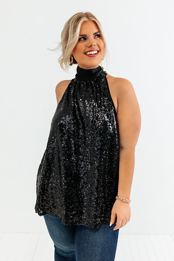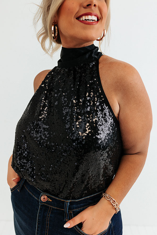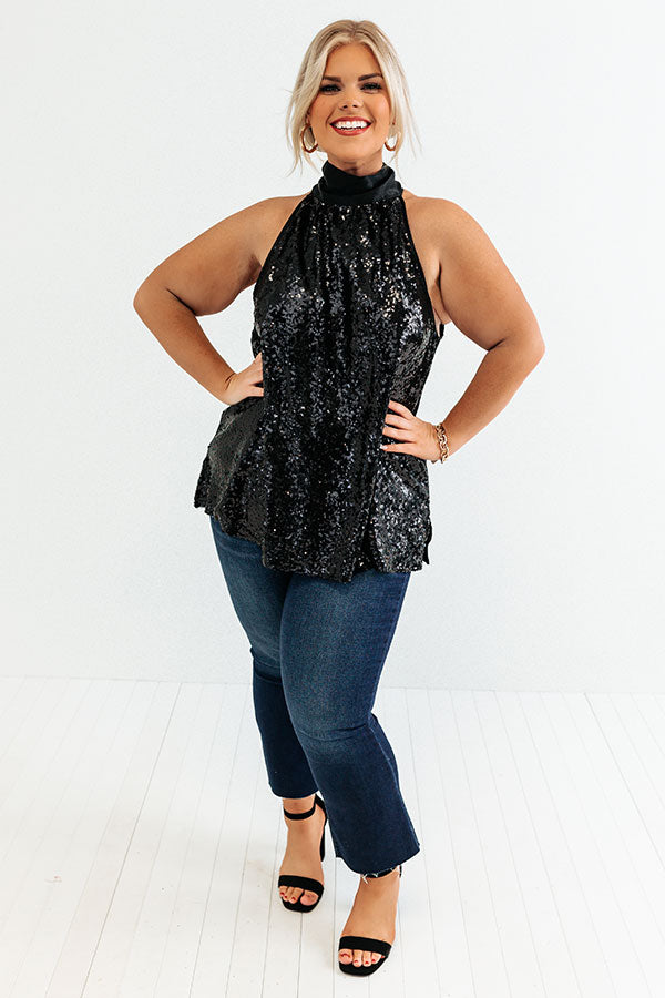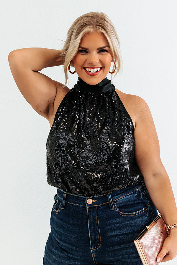 Rooftop Memories Sequin Top In Black Curves