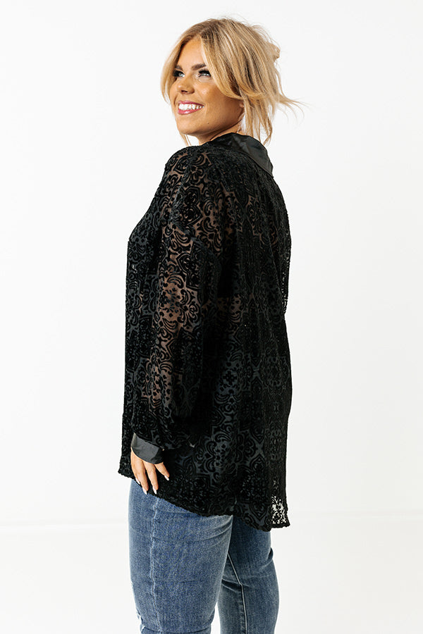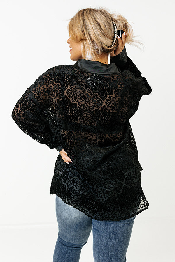 Rooftop Soiree Velvet Burnout Top In Black Curves