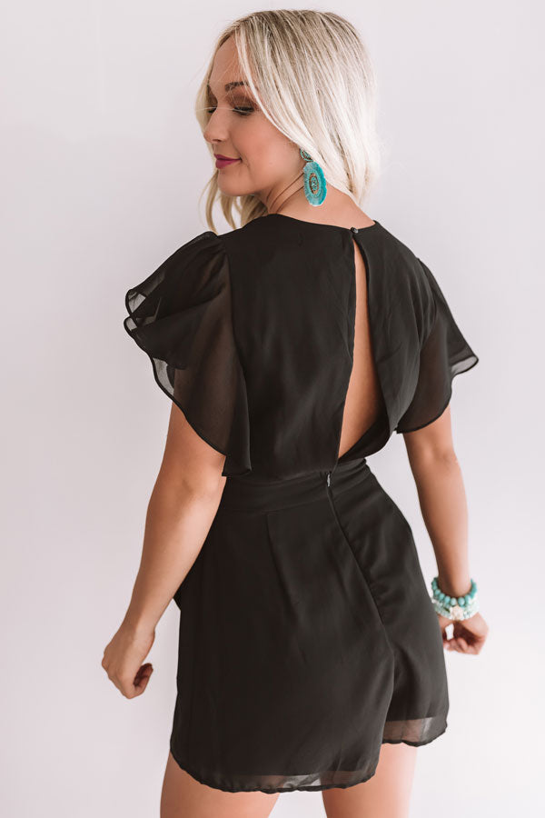 We believe you can accomplish anything when you're wearing a romper! Especially when that romper has ruffled sleeves, a tie belt, and an attractive back that has an oversized keyhole cutout with a button closure and zipper! Step up your summer style by pairing this black piece with some wedges and a bracelet set! Measurements