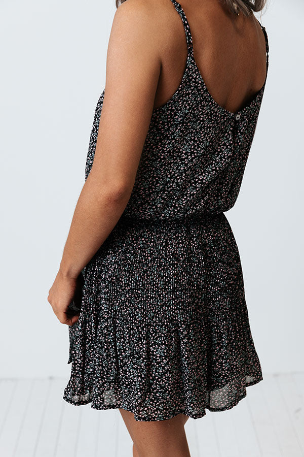 People are sure to envy your wardrobe when you arrive in our darling black 'Rows Of Roses Romper' featuring lightweight flowy material patterned with a small white floral print, a v-cut neckline with adjustable spaghetti straps, a cinched waistline with a tie belt, a keyhole accented back with a button closure, and a relaxed shorts silhouette that falls into straight upper thigh length hemlines!