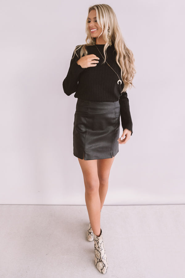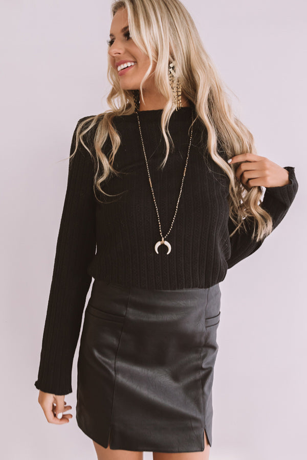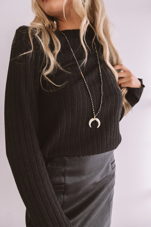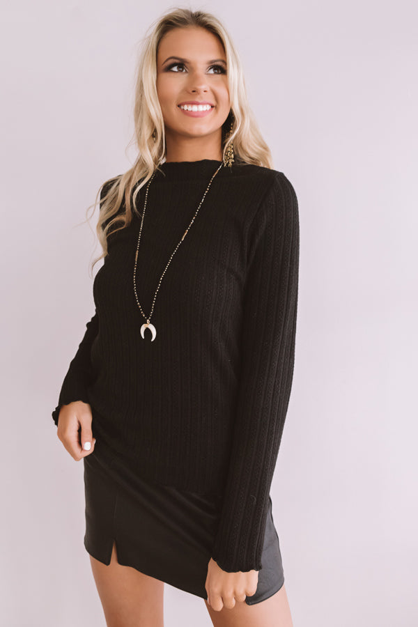 Everyone will want an RSVP to your style party when you wear this adorable black top featuring soft lightweight tight knit material with ribbed texturing, a high rounded neckline, long loose sleeves, and a relaxed silhouette that falls into a straight hemline! You can style this basic closet essential a variety of ways, like layered under a snake print blazer with a faux leather skirt, snake print booties, and a black crossbody, or it can be worn solo with some distressed light wash ankle skinnies, "The Saylie Peep Toe Heel in Blush" and our "Plans In Paris Wool Hat in Pink!"