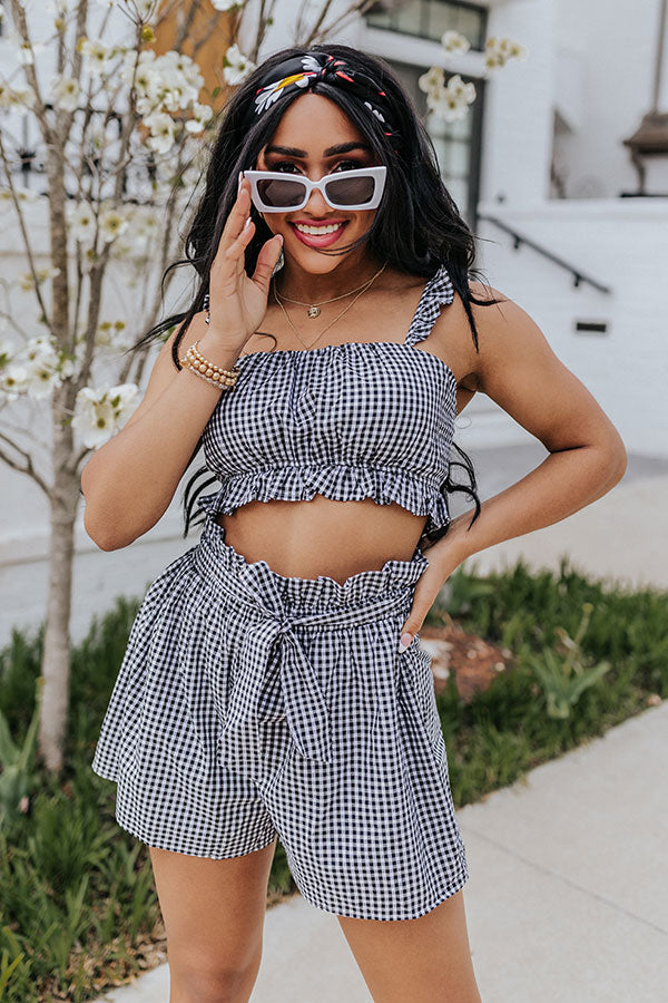 Ruffled Up Gingham Shorts In Black