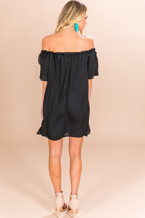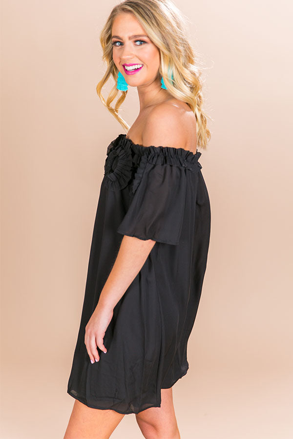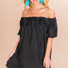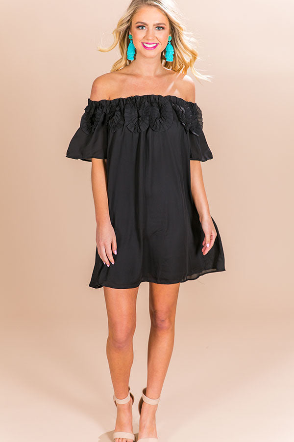 Ruffle up some plans, and step out in style in this chic LBD! This black dress has an elasticized pleat-accented off-the-shoulder neckline, short sleeves & a relaxed chiffon silhouette. Style this black beauty with heels & a statement earring for a chic look that's sure to ruffle up some romance! - Fully lined. - Hand wash cold. Hang to dry.
