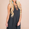 Swing your way into the shift dress of your dreams! The criss-cross accented neckline of this dress adds the perfect touch of sass to this comfy cutie. With it's relaxed silhouette & ultra soft modal feel, you'll want to run away in this dress & never look back!