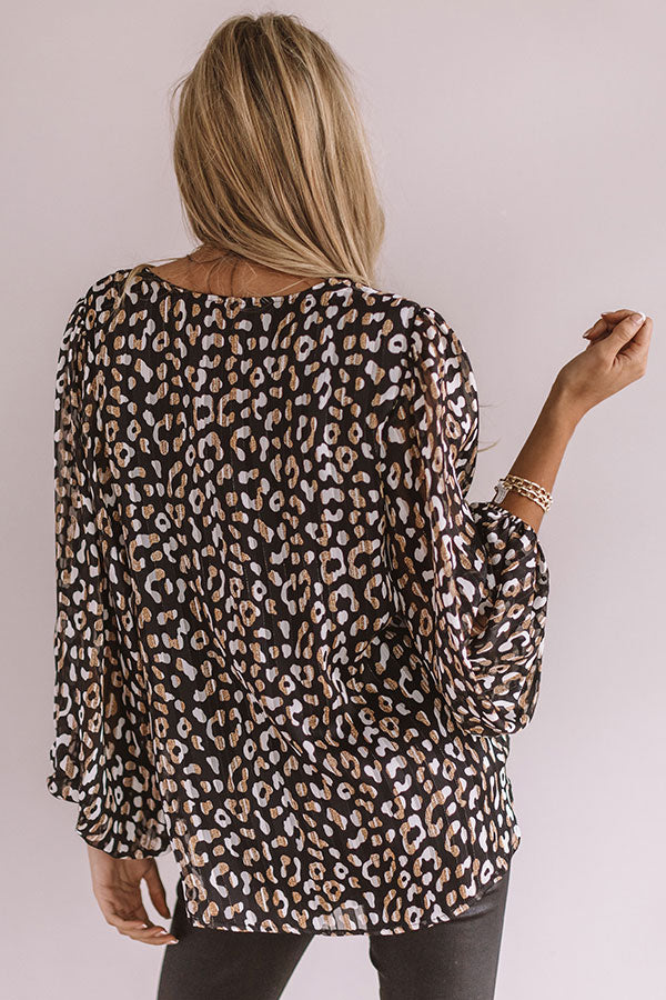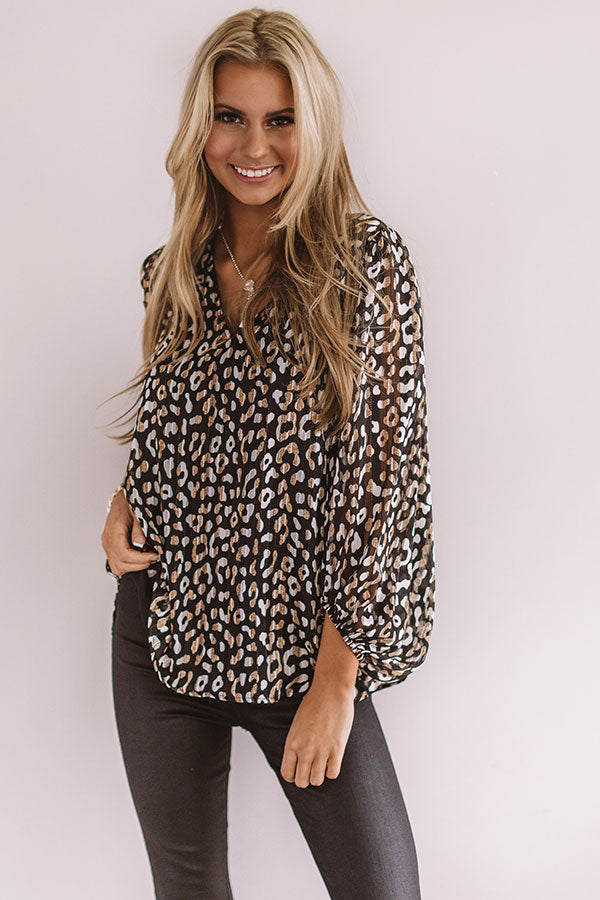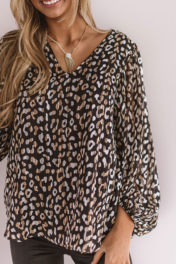 Runaway Fabulous Leopard Shimmer Shift Top In Black