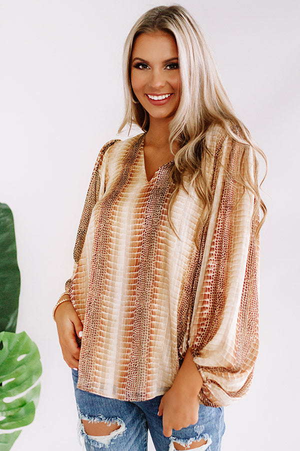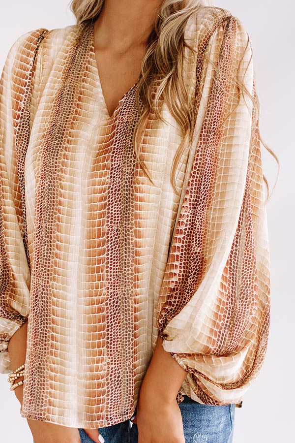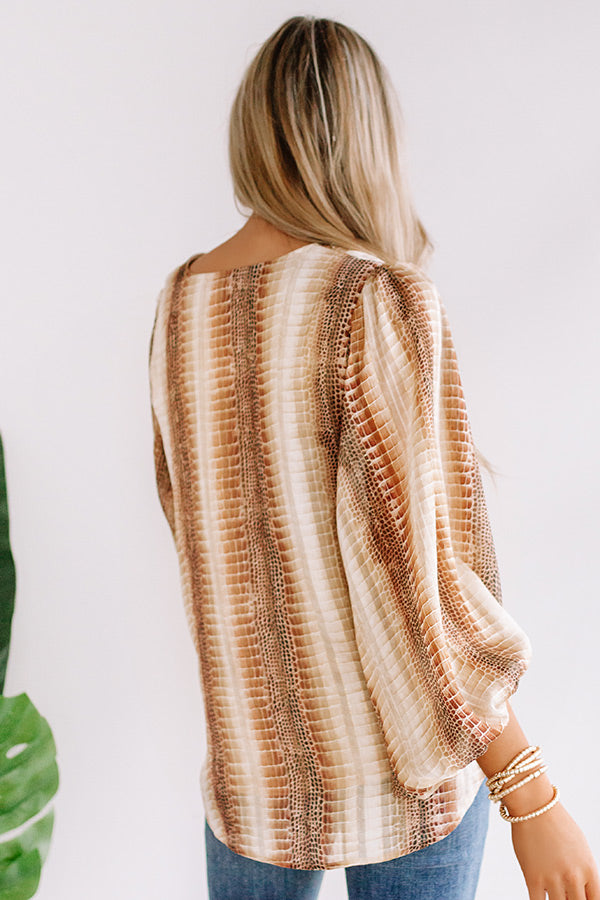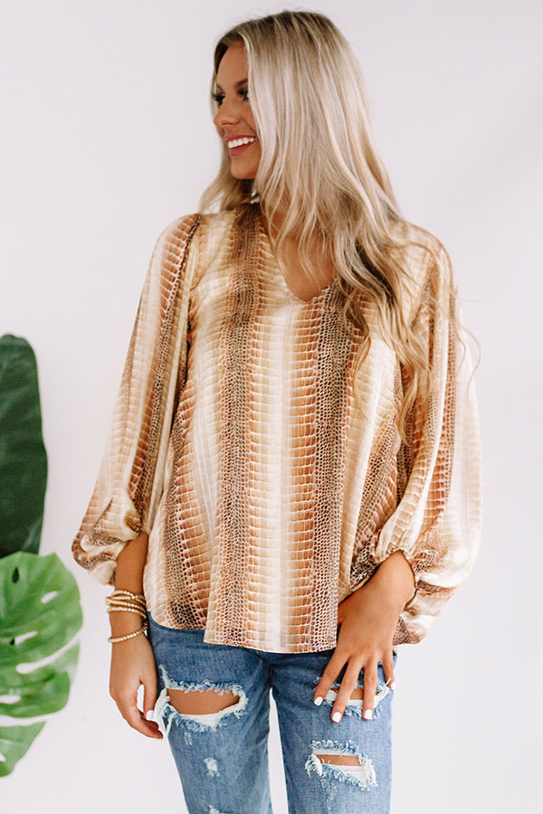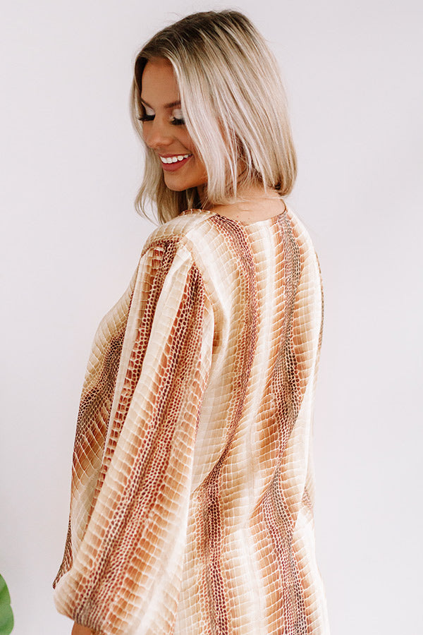 Runaway Fabulous Snake Print Shimmer Shift Top In Brown