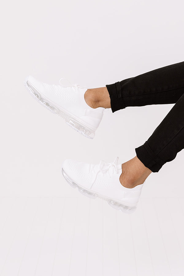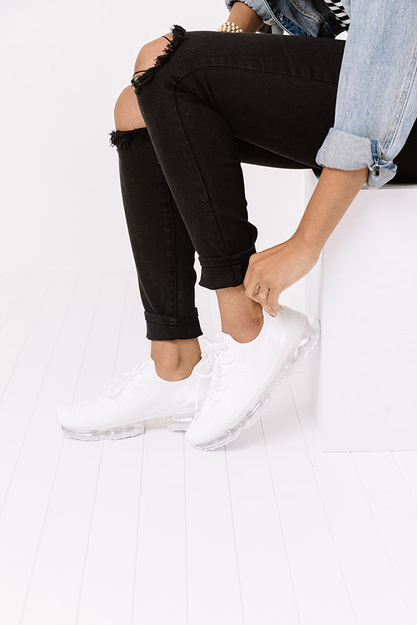 Run free in these stylish white sneakers featuring stretchy breathable mesh material with clear soles, rounded closed soles, and a lightweight lace-up silhouette! For a more comfortable fit, we recommend ordering a 1/2 size down from what you typically wear. For example, if you normally wear a size 7.5, we recommend ordering a size 7.