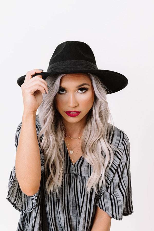 You will look like you just stepped off a runway show when you wear this darling black fedora featuring lightweight wool material, a stiff 3.5-inch brim, and a wide accent band!