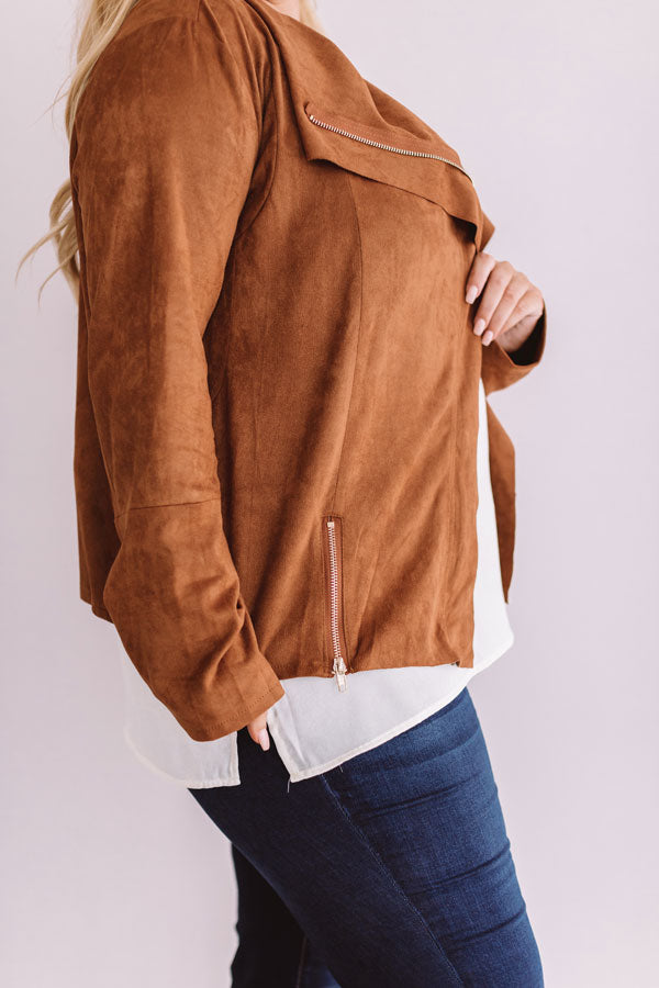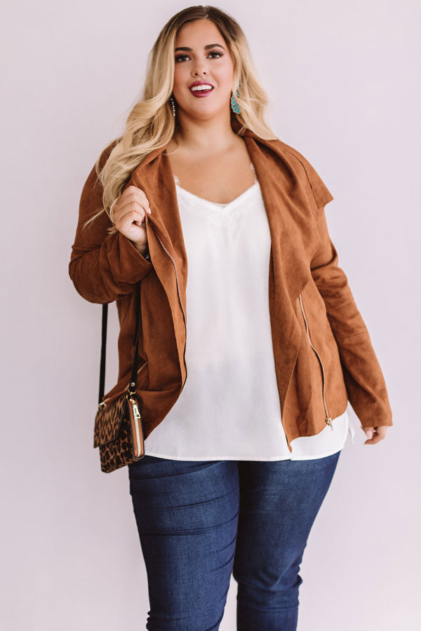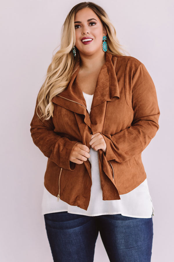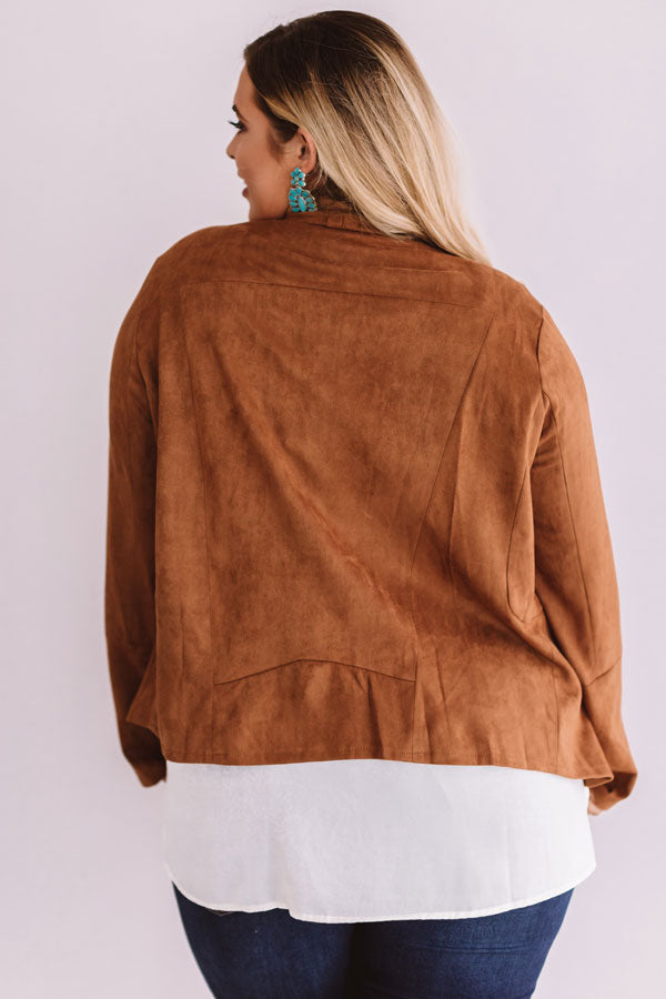 Sacramento Stroll Faux Suede Jacket in Cinnamon Curves