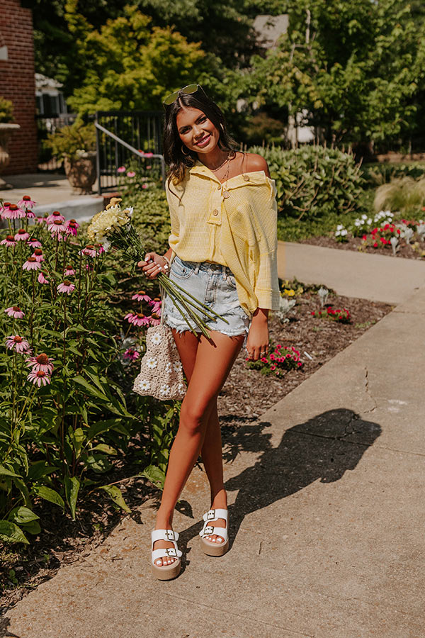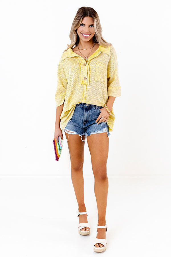 Sailing Away Waffle Knit Top In Yellow