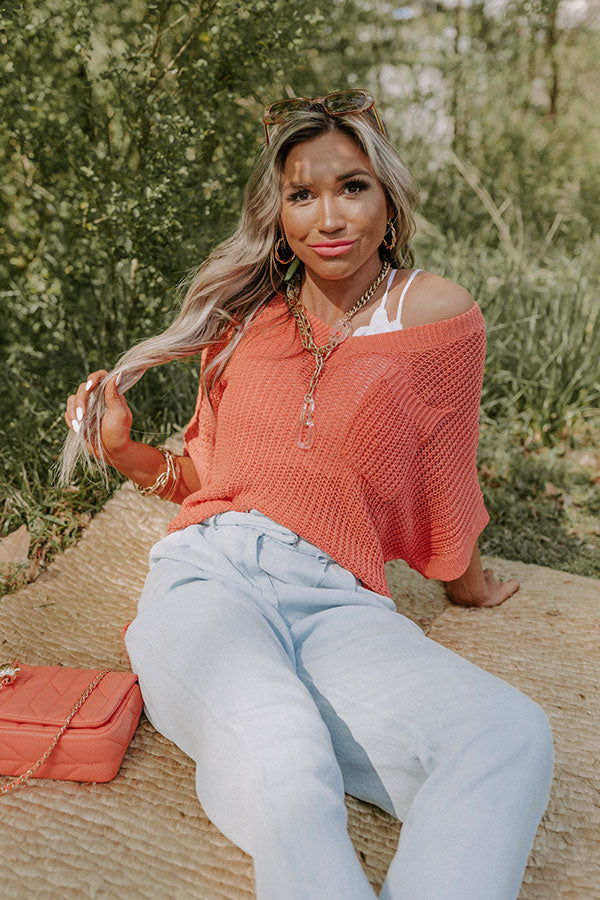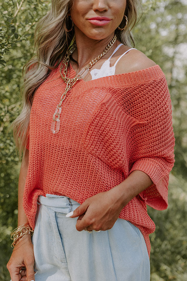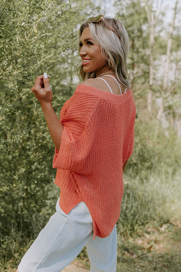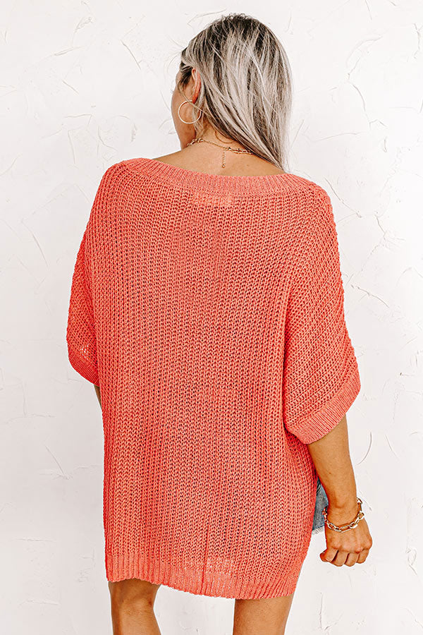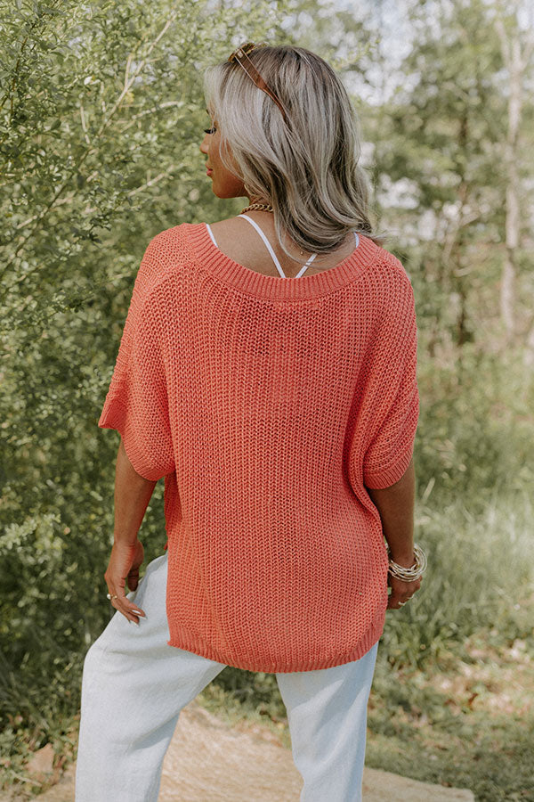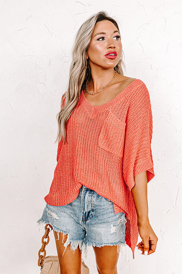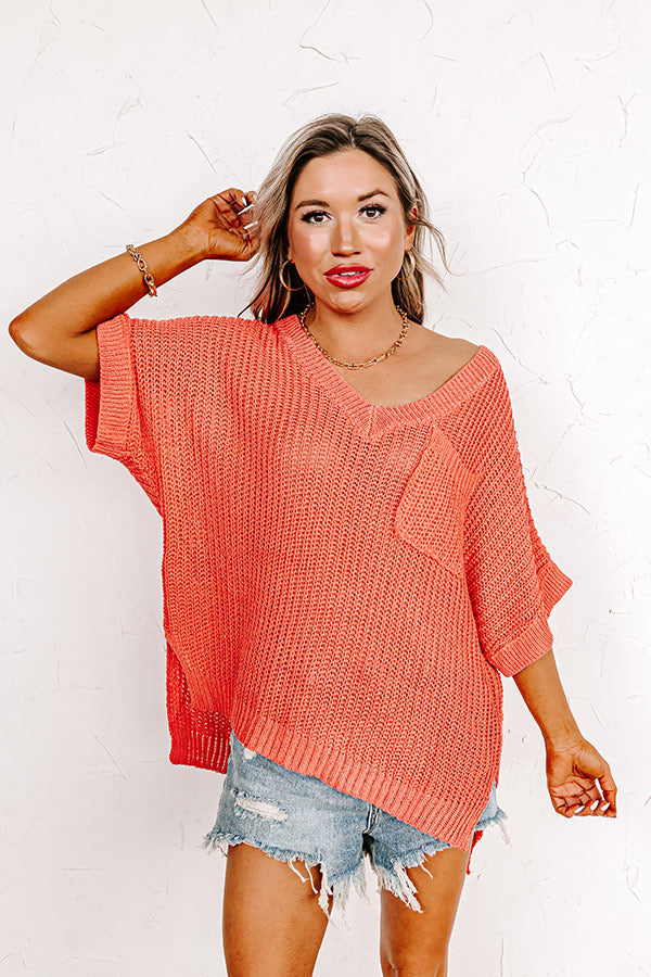Keep your look casual but cute in our basic coral colored 'Sand Castles In Seychelles' top featuring ultra lightweight knit material, a v-cut neckline, short loose sleeves, a single accent chest pocket, and a slouched silhouette that ends in a straight hemline! on products
