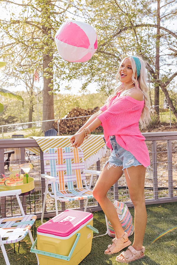 Sand Castles In Seychelles Knit Top In Neon Pink