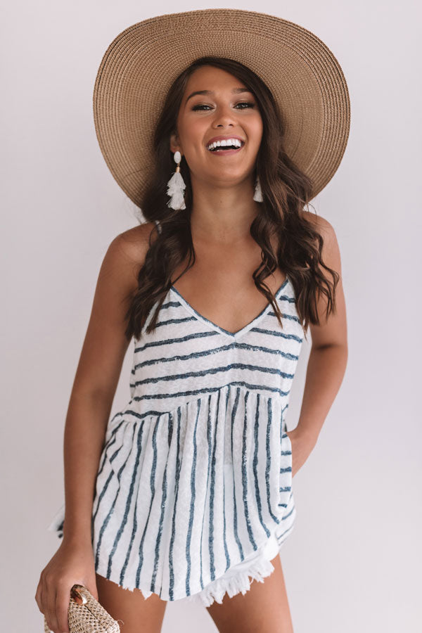 Money can't buy happiness, but it can buy clothes and you will for sure want to buy this striped babydoll top for your closet! Pair this white pieces soft, flowy material and spaghetti straps with some white shorts and trendy heels for a carefree summer outfit! Measurements
