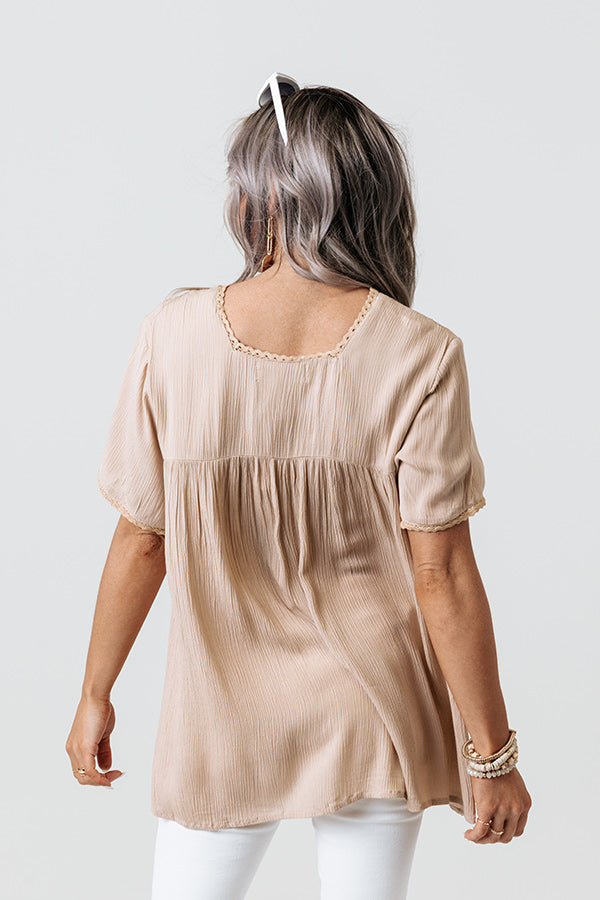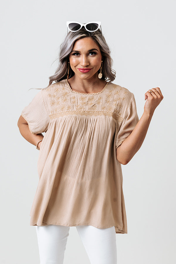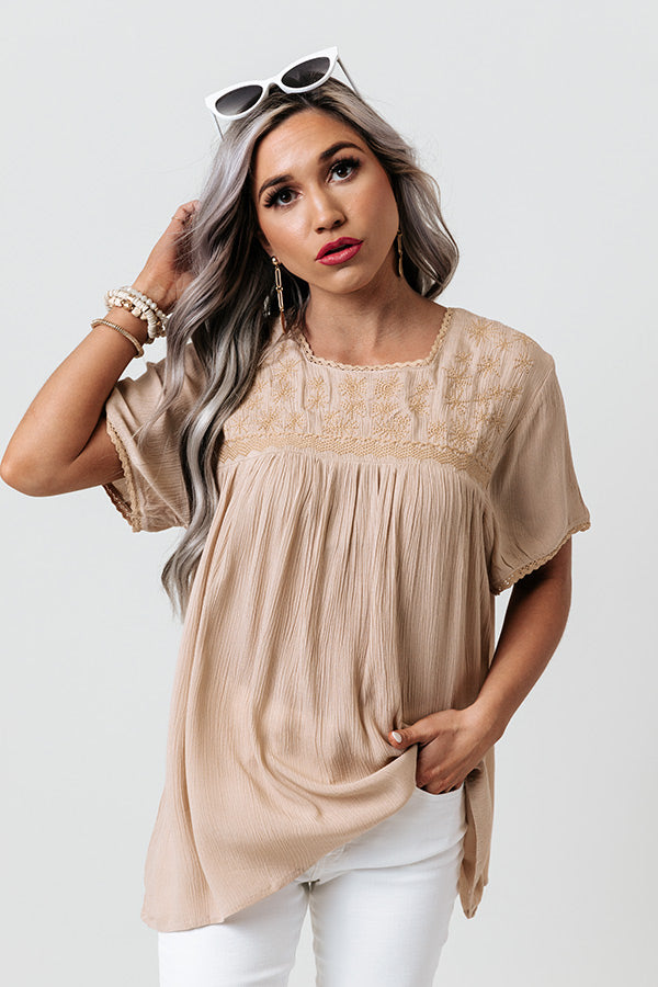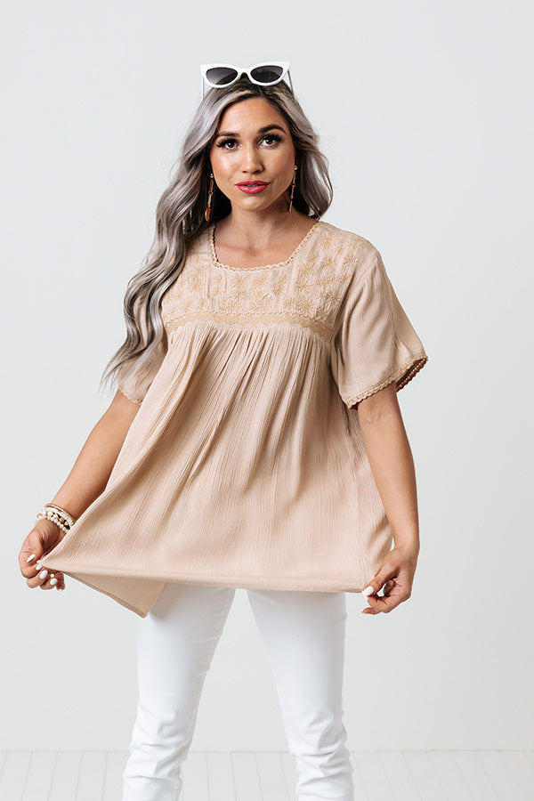 Sangria Sway Embroidered Top In Iced Latte