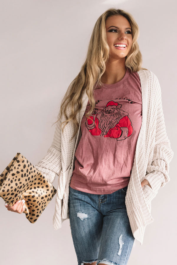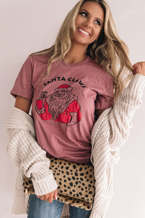 Add a little humor and an extra bit of cheer to your holiday wardrobe with our dark red "Santa Claws Shift Tee" featuring lightweight material, a high rounded neckline, short loose sleeves, an adorable Santa front graphic, and a relaxed silhouette that falls into a straight hemline! Measurements