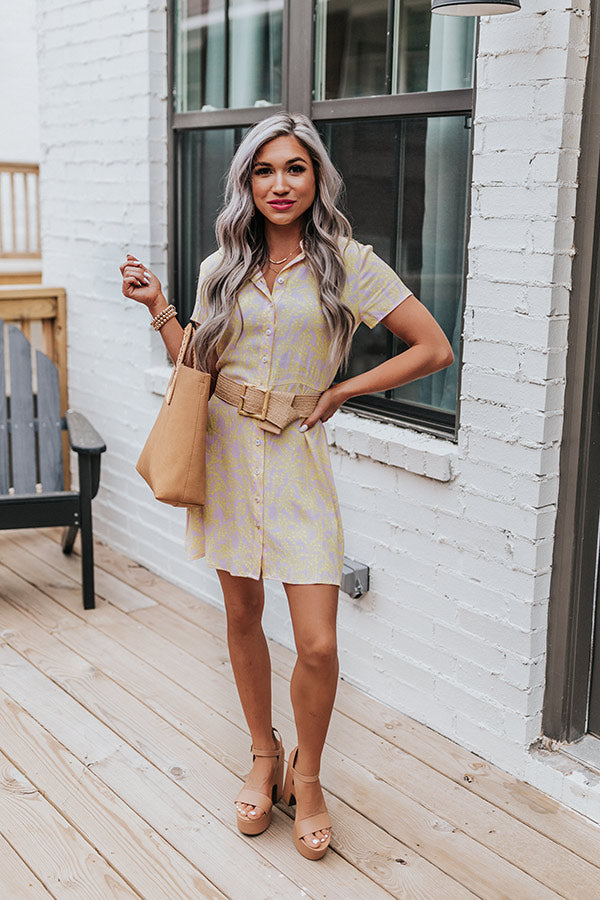 You are sure to receive compliments when you arrive in our sophisticated light purple hued 'Santa Monica Pier Dress' featuring lightweight material patterned with a yellow floral print, a button down front with a collared neckline, short sleeves, and a relaxed silhouette that falls into a straight mid-thigh length hemline!