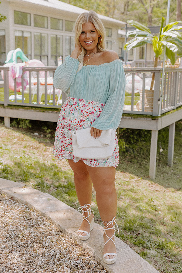 Complete your look in a sassy but sweet way with this darling pear colored plus size shift top featuring lightweight material with subtle vertical stripe texturing, an elastic off-shoulder neckline with ruffle trim detailing, long loose sleeves, and a relaxed silhouette that falls into a ruffled hemline! on products