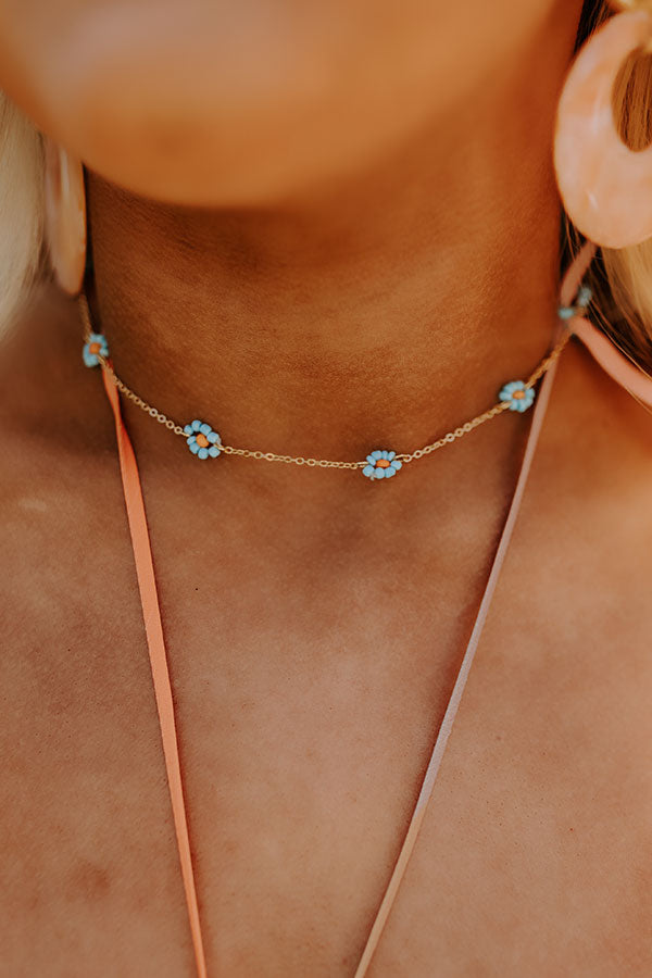 Add a darling finish to any look with our adorable 'Savor The Sunshine' necklace featuring a dainty gold chain with small blue beaded flower detailing!