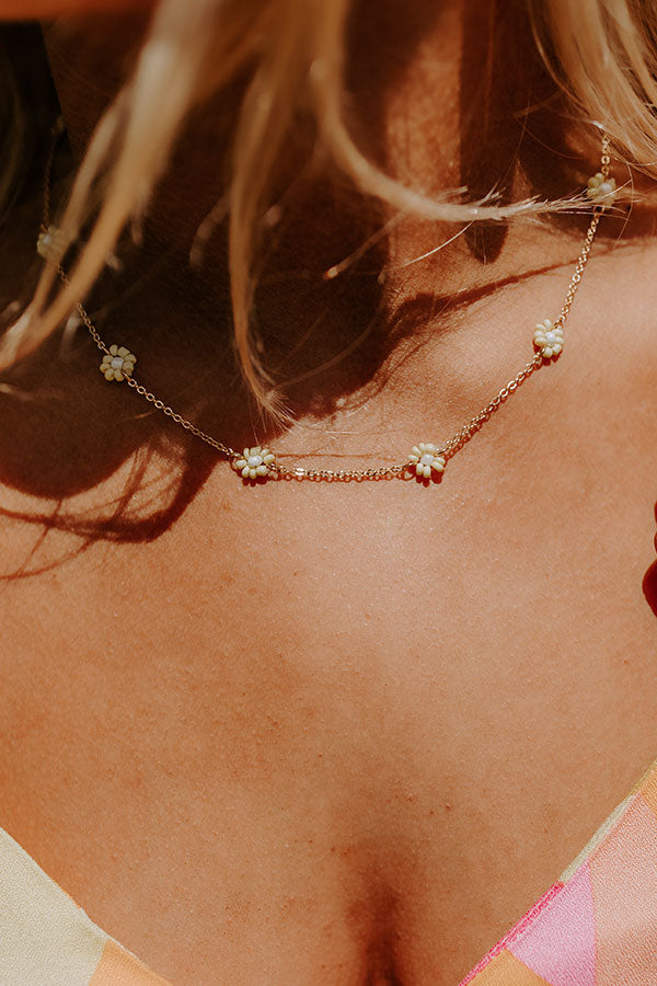 Add a darling finish to any look with our adorable 'Savor The Sunshine' necklace featuring a dainty gold chain with small yellow beaded flower detailing!