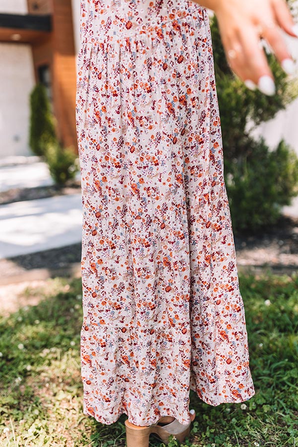 Say It Sweetly Floral Midi In Iced Latte