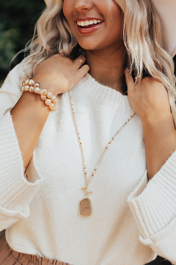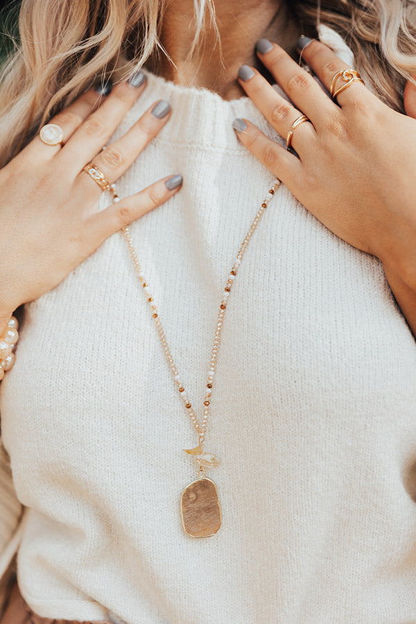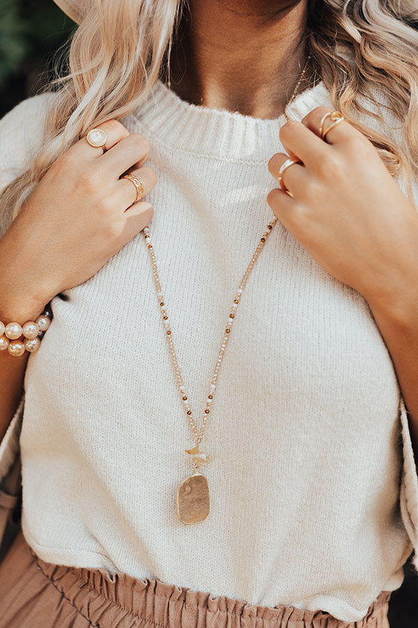 People are sure to say something sweet about how adorable this necklace is with its long dainty beaded chain and large semi precious stone pendant!