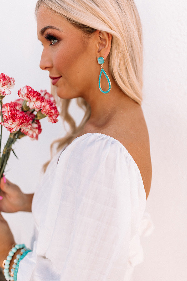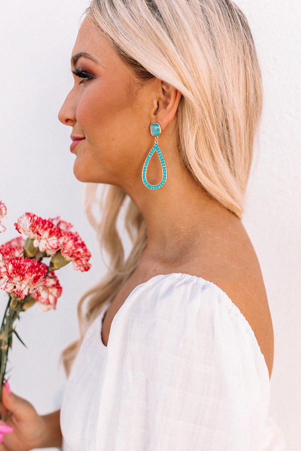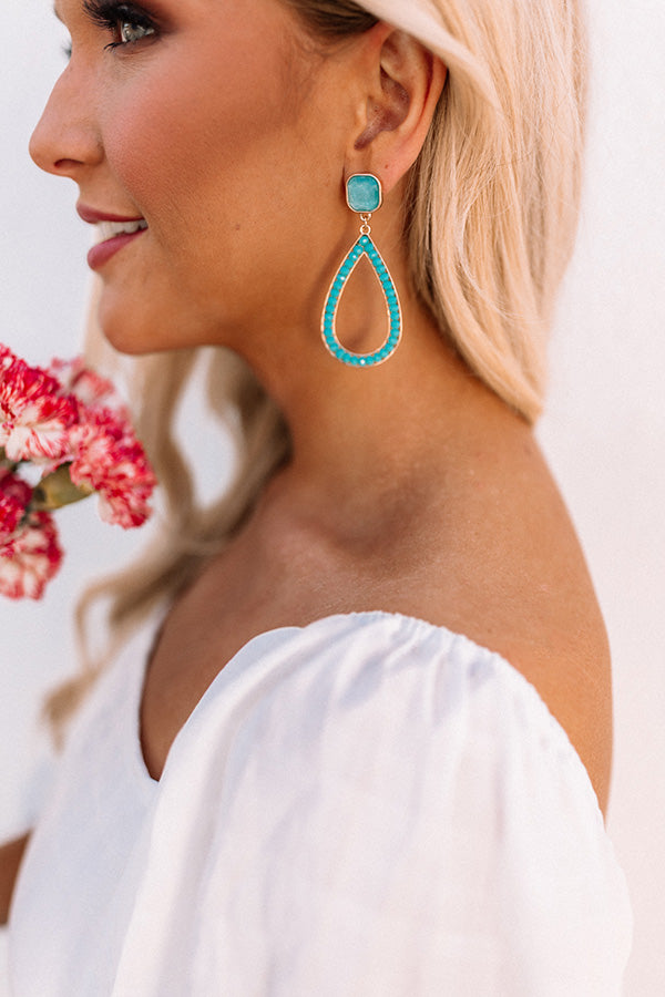 Wow the crowd with our pretty aqua colored 'Sea Twirls Earrings' featuring a square gemstone stud and a dangling teardrop hoop!