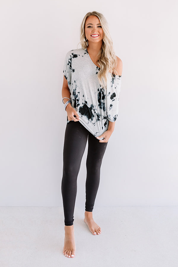 Our adorable "Seal The Deal" top is to "dye" for with its soft lightweight material patterned with black tie dye, wide rounded neckline that can be worn off one shoulder, short loose sleeves, and ultra relaxed silhouette that falls into a rounded hemline! We have styled this cutie with some matching active leggings, but you can also wear it with some distressed denim shorts, "The Allen Wedge in Black," sunnies, and "The Essential Faux Leather Backpack in Black!" Measurements