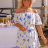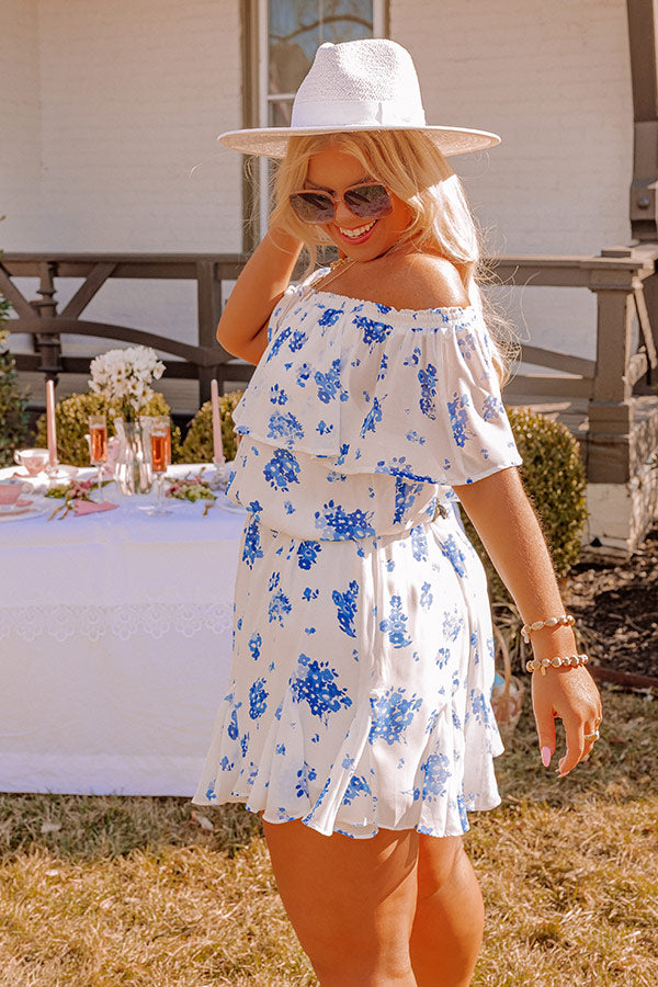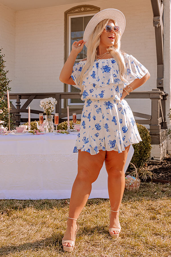 Be bold this spring in our charming white plus size 'Seas The Moment Romper' featuring lightweight material patterned with a royal blue floral print, a straight elastic off-shoulder neckline, an overlay bodice with drop sleeves, a cinched waistline, and a relaxed shorts silhouette that ends in ruffled upper-thigh length hemlines!