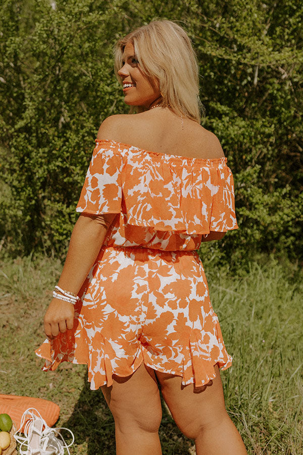 Seas The Moment Floral Romper In Orange Curves