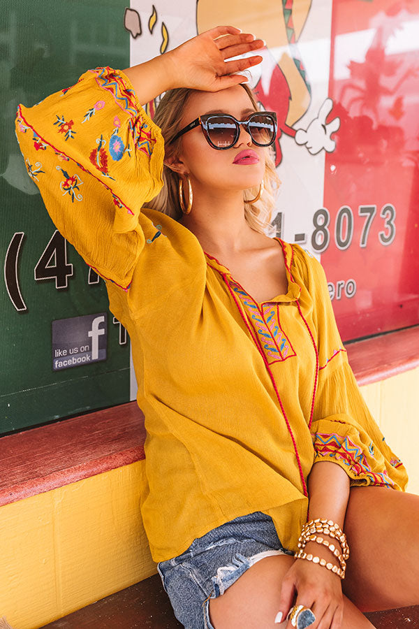 Seaside Sweetheart Embroidered Shift Top In Mustard