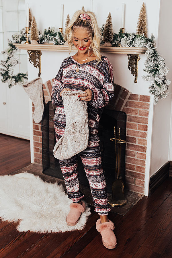Get comfy for opening presents on Christmas morning with our adorable 'Season Of Miracles Top' featuring soft material patterned with blush white, and charcoal hued Christmas prints, a v-cut neckline, long loose sleeves with fitted cuffs, and a slouched silhouette that falls into a straight hemline!