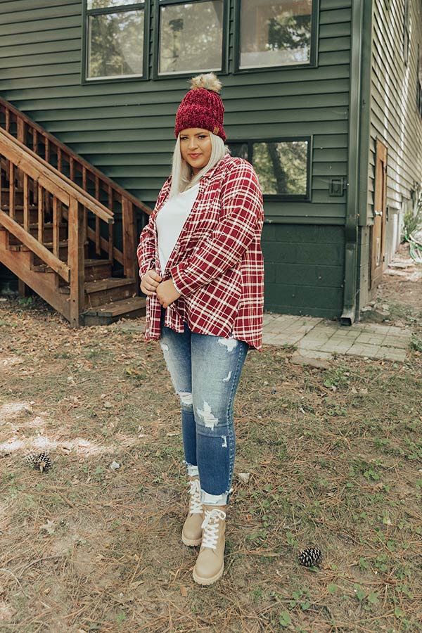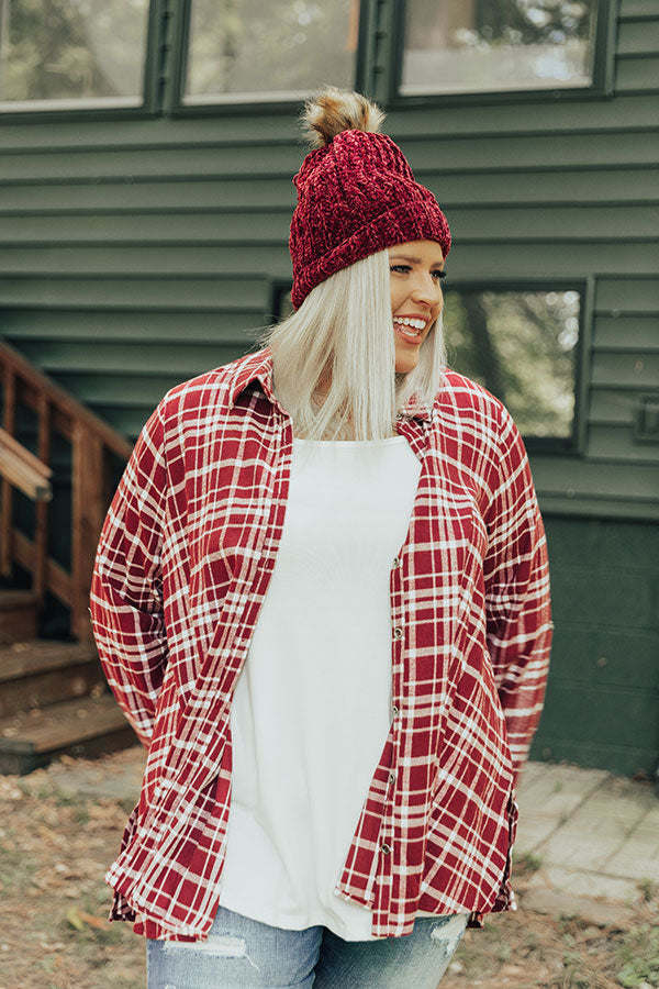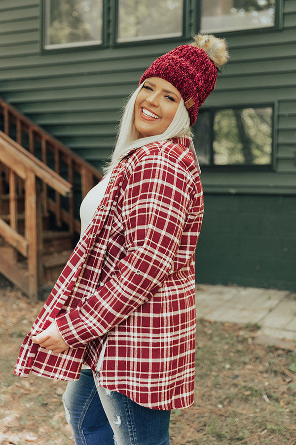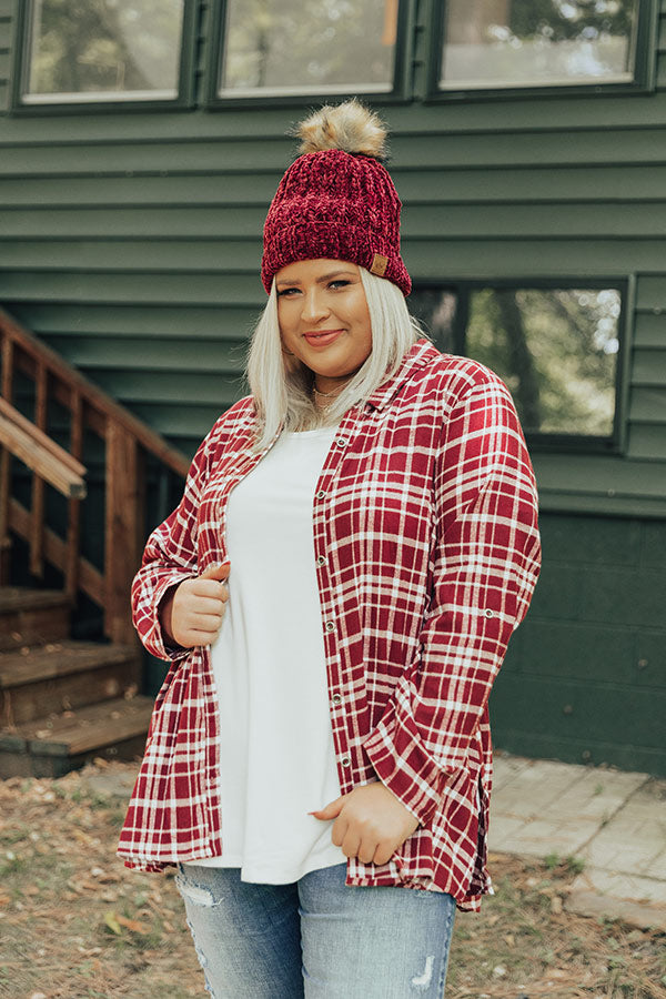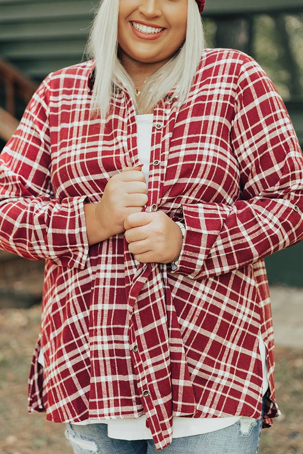 Get into the rhythm of the season with this adorable plus size wine hued top featuring lightweight material patterned with a white plaid print, a button up front with a collared neckline, long loose sleeves with button closure cuffs, and a relaxed silhouette that falls into a rounded hemline! Measurements