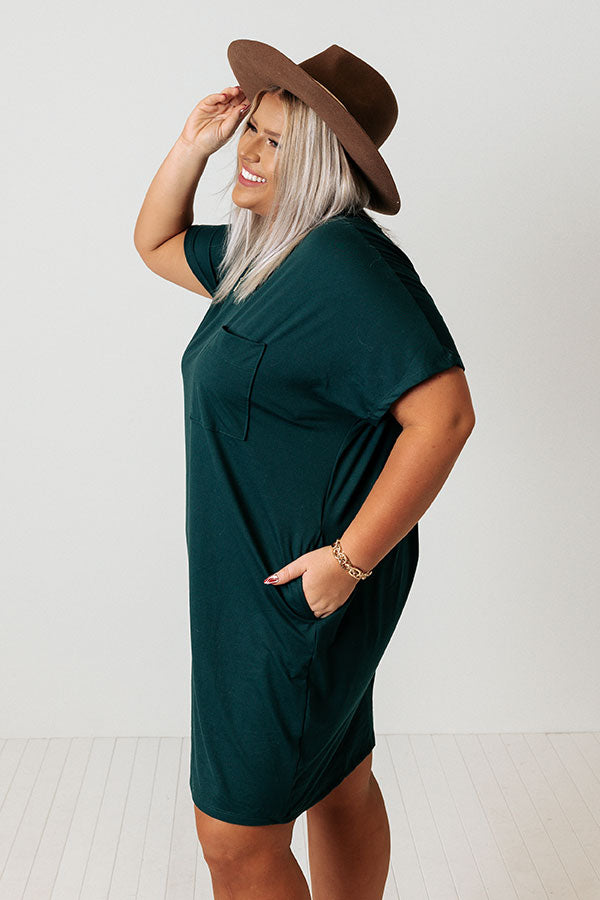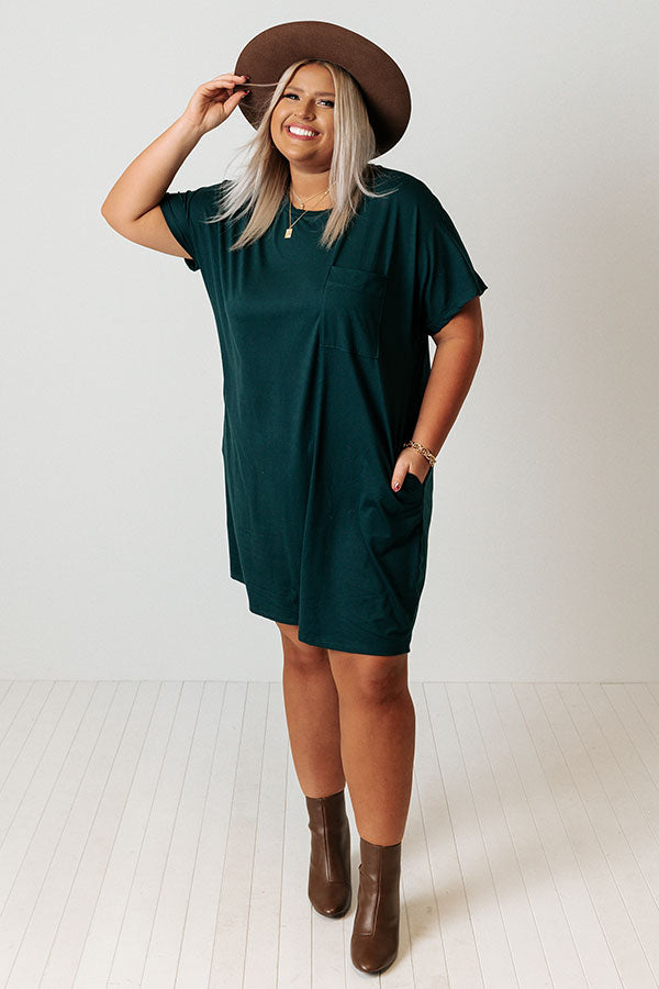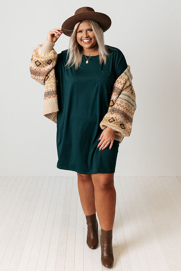 Seasonal Rhythm T-Shirt Dress In Hunter Green Curves