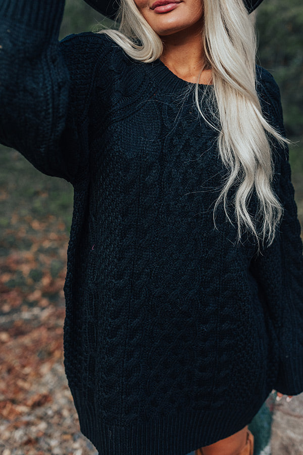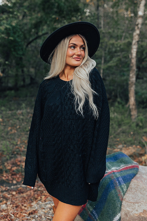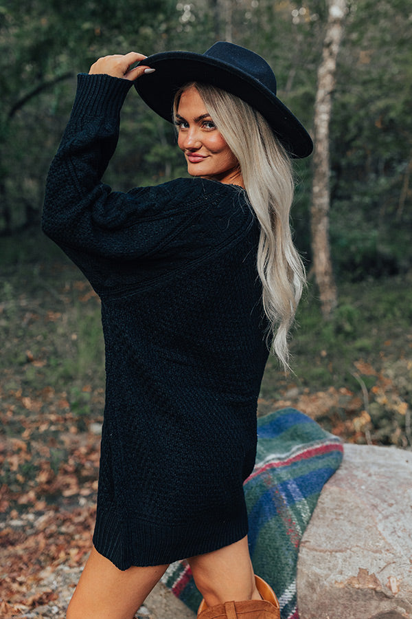 Seasonal Treats Cable Knit Sweater Dress in Black