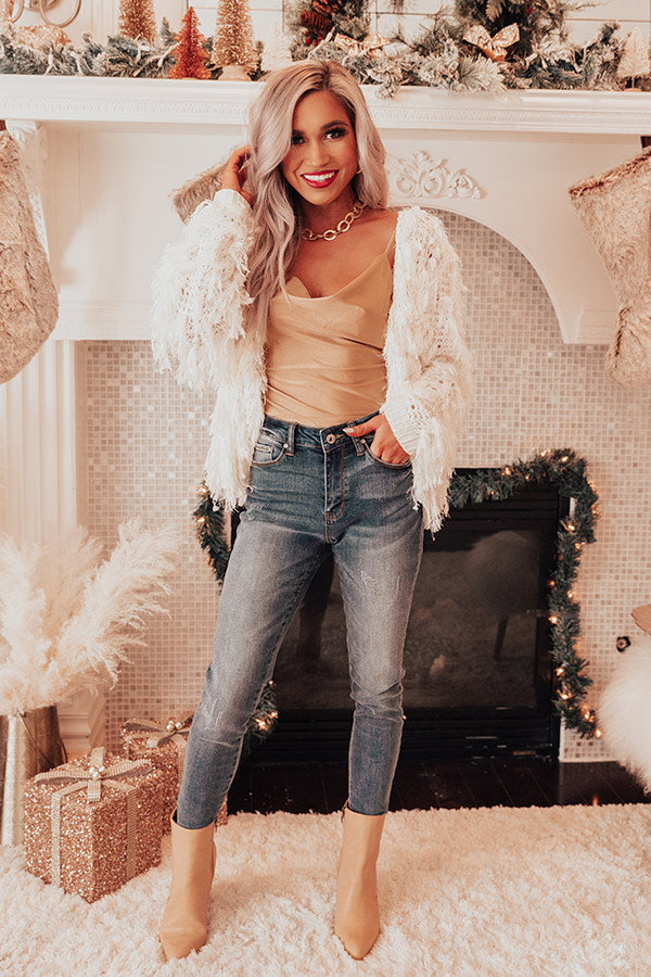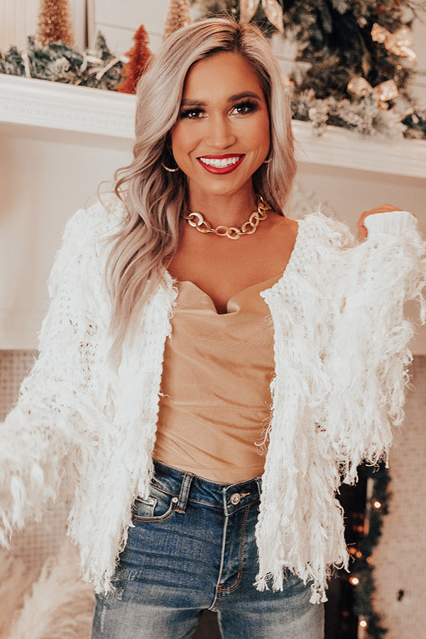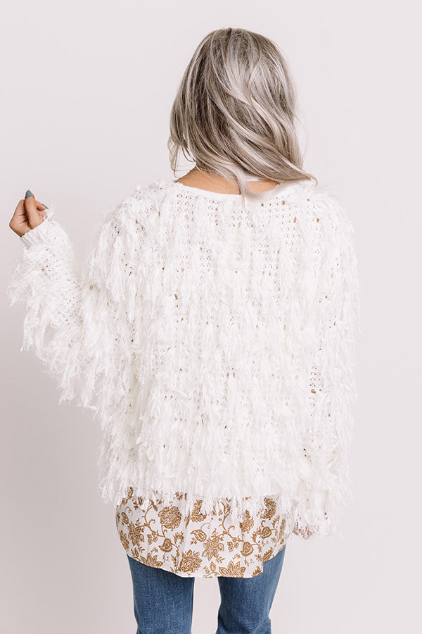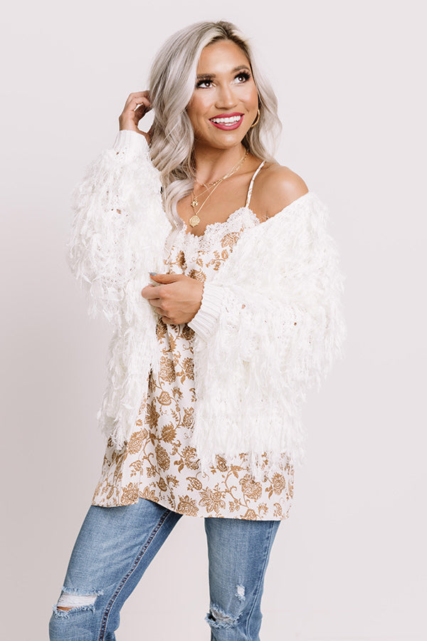 Change seasons in style with this stunning white cardigan featuring soft lightweight loose knit material with oversized fringe detailing, long loose sleeves with fitted ribbed cuffs, and a relaxed open front silhouette that falls into a straight hemline! Measurements