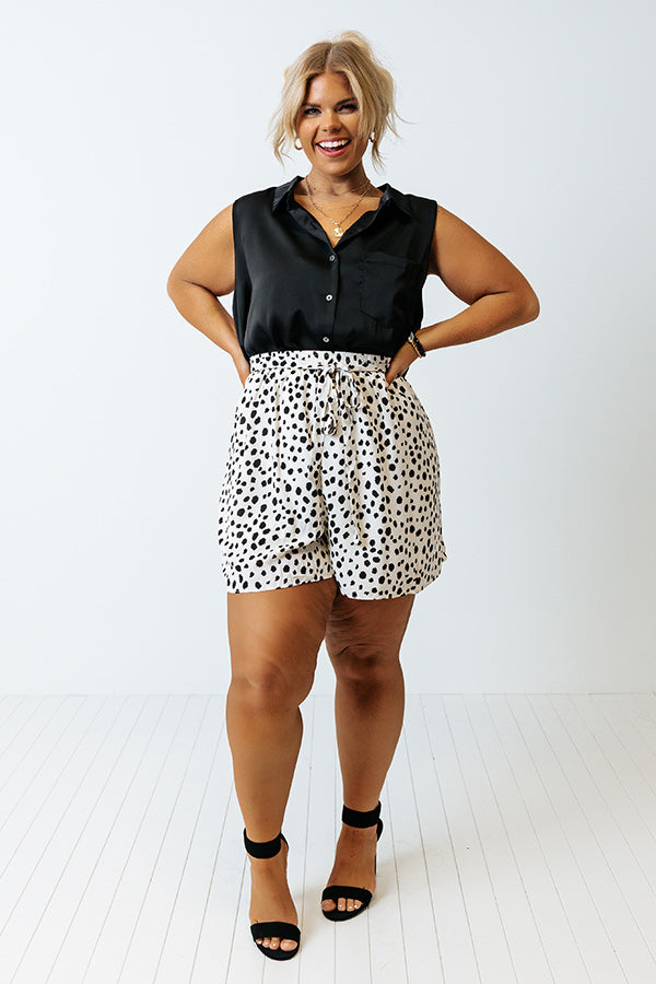 People are sure to give you an appreciative second glance when you complete your look with these charming white plus size shorts featuring lightweight material patterned with a black spotted print, a high waistline with a ribbon tie, and a relaxed silhouette that ends in straight upper-thigh length hemlines! on products